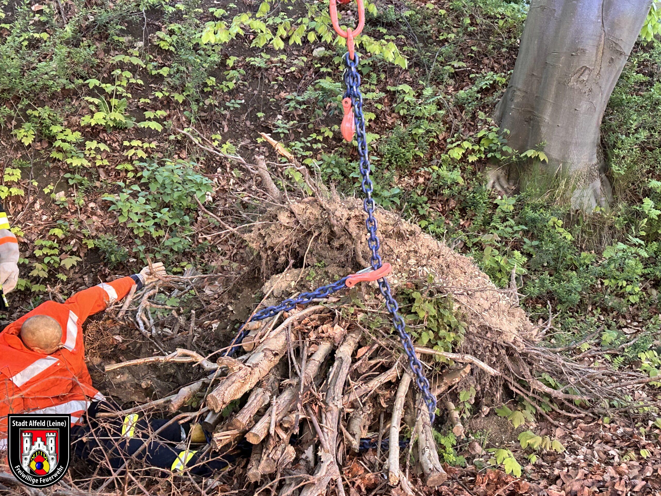 Des Weiteren war direkt daneben eine Person unter einem umgekippten Baumstamm eingeklemmt.