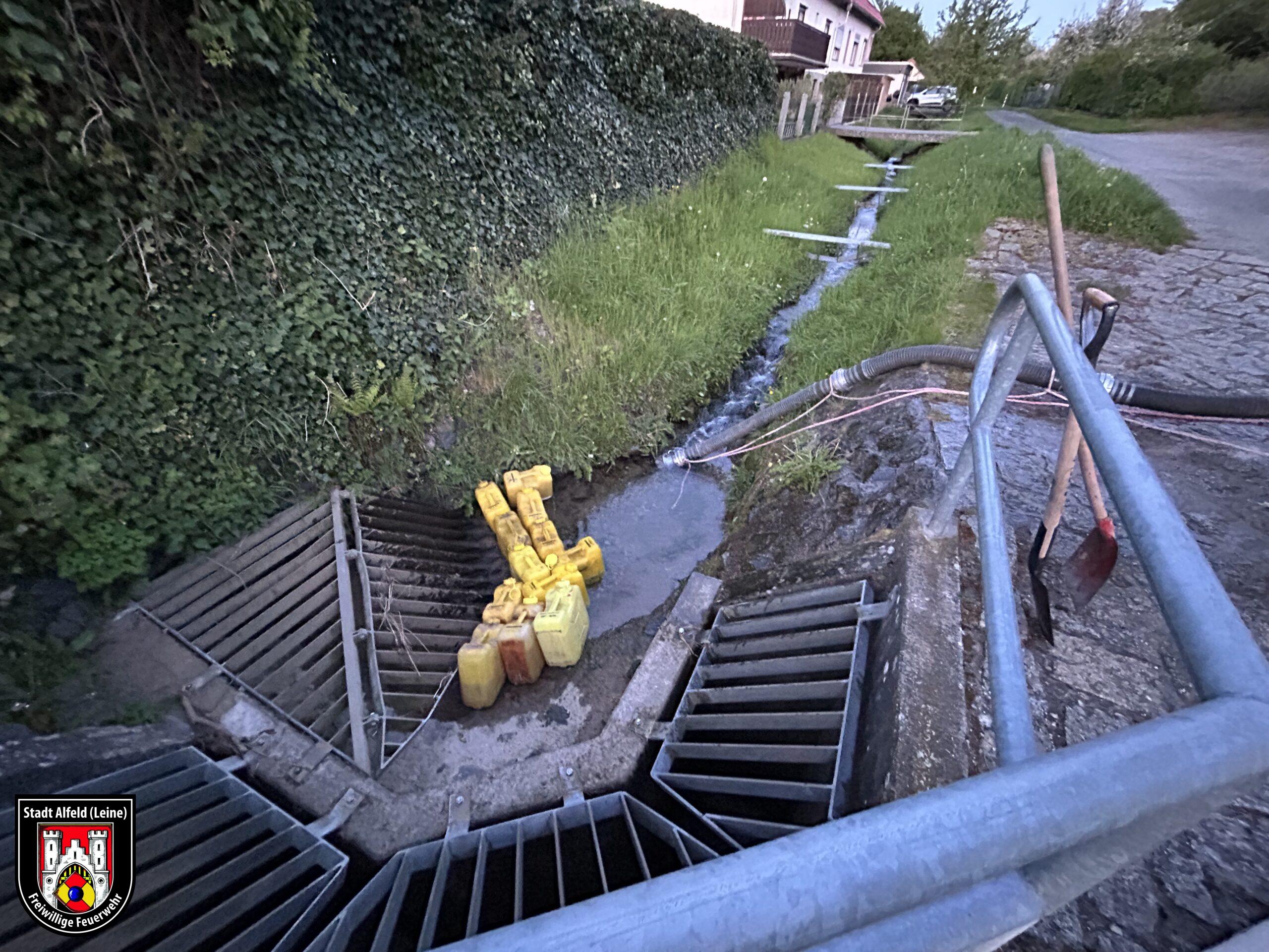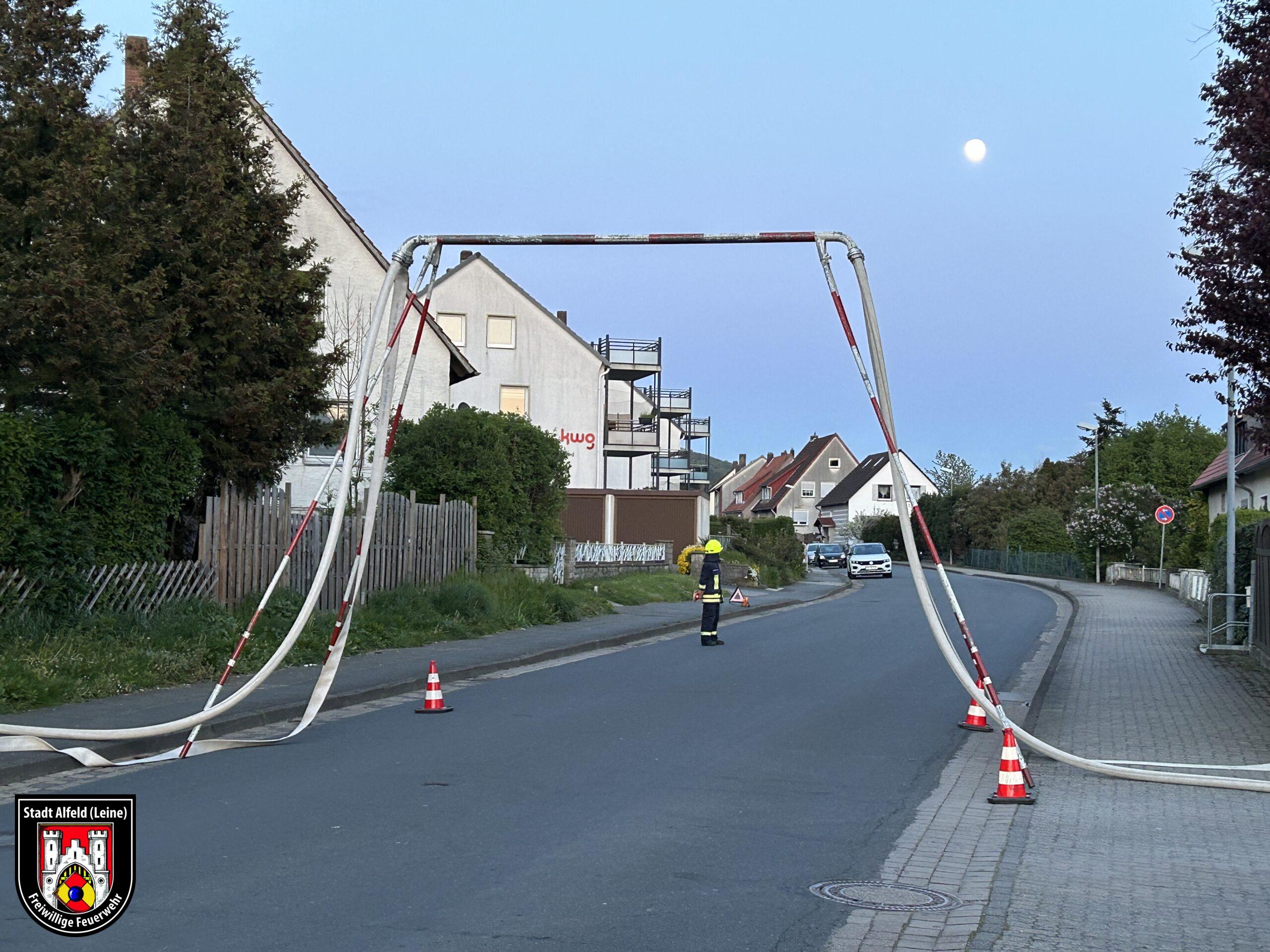Eine offene Wasserentnahmestelle an der Wambeeke, inklusive Schlauchbrücke über die Winzenburger Straße war aber schnell errichtet und es konnte bald „Feuer Aus!“ gemeldet werden.