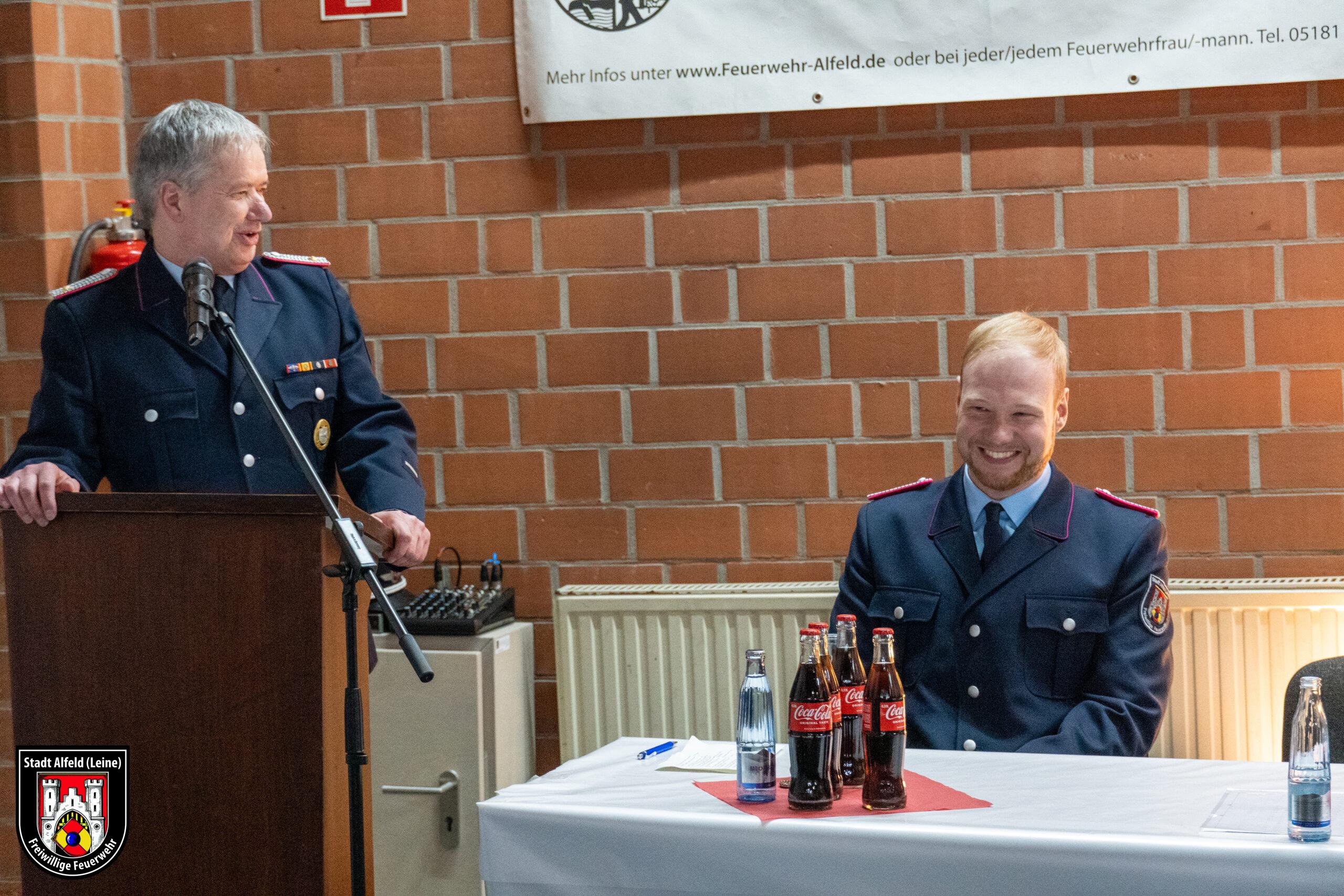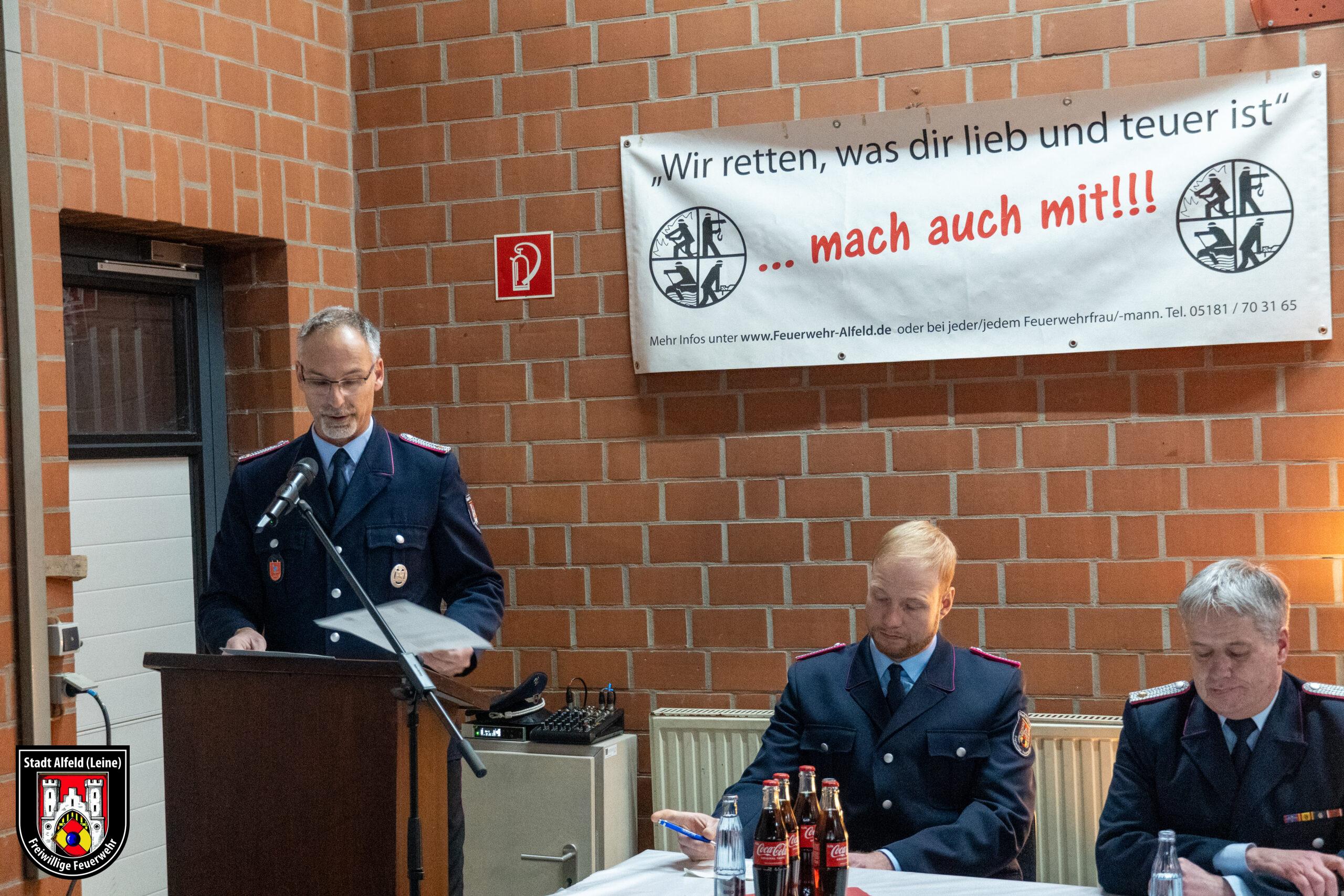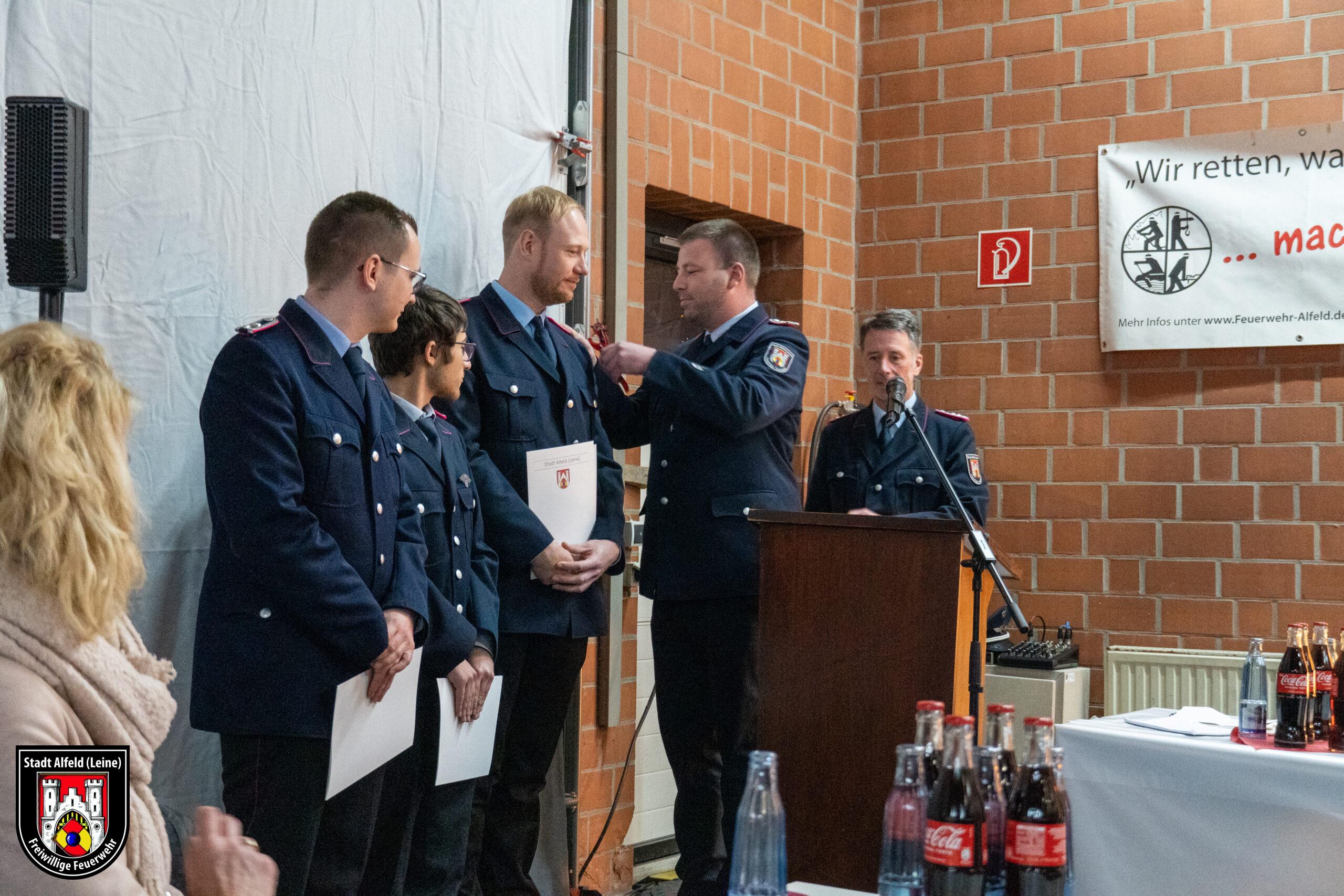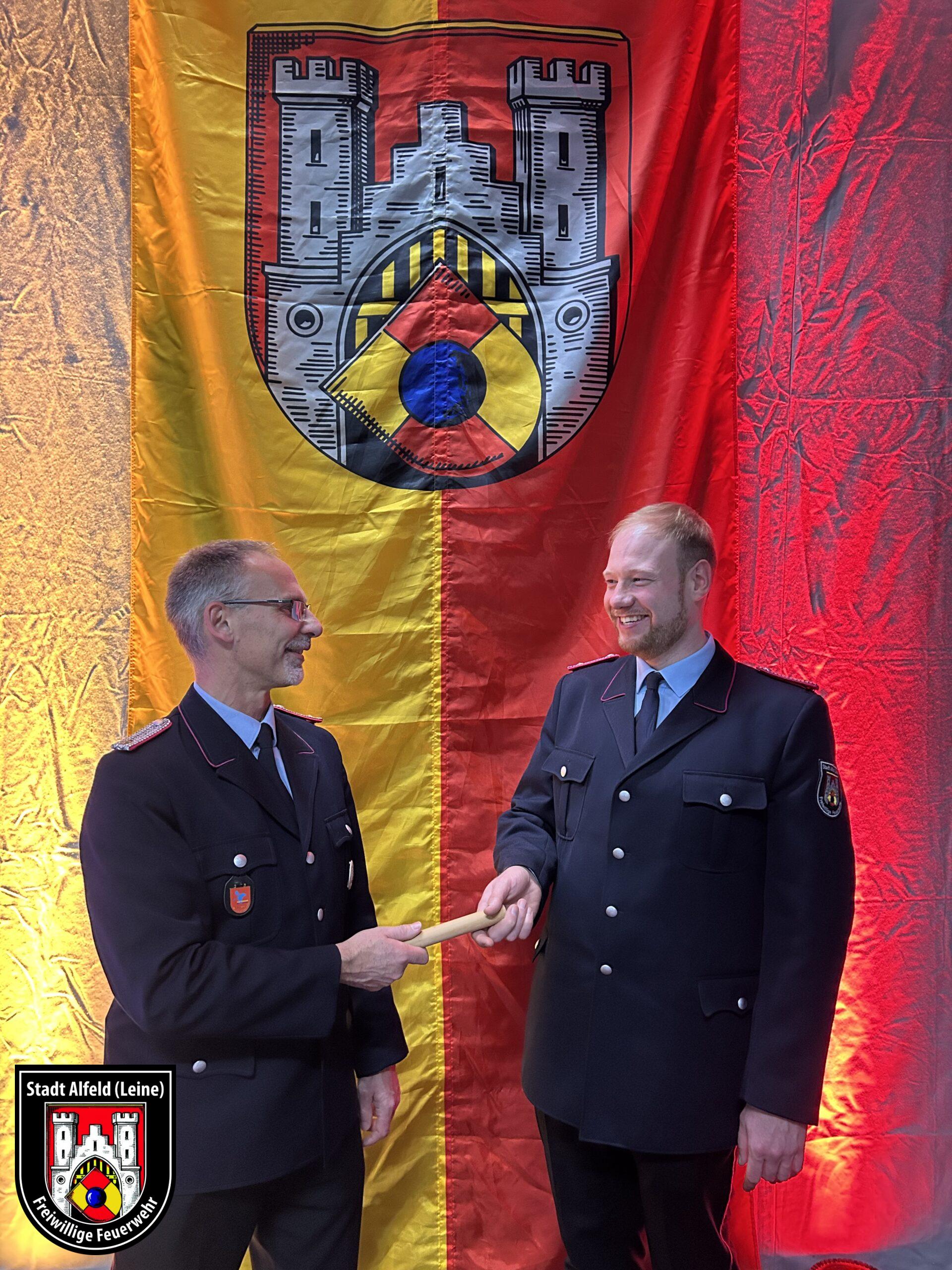 Ein bedeutender Wechsel fand in der Führung statt: Kamerad Otto übergab nach 18,5 Jahren den symbolischen Staffelstab für die Zugführung des 1. Zuges an seinen bisherigen Stellvertreter Hecht. Zudem berichtete unser Ortsbrandmeister über die neue Wehrgliederung sowie die Investitionen des Feuerwehrvereins. Ein besonderes Highlight war die Indienststellung unseres neuen Kommandowagens im Oktober.