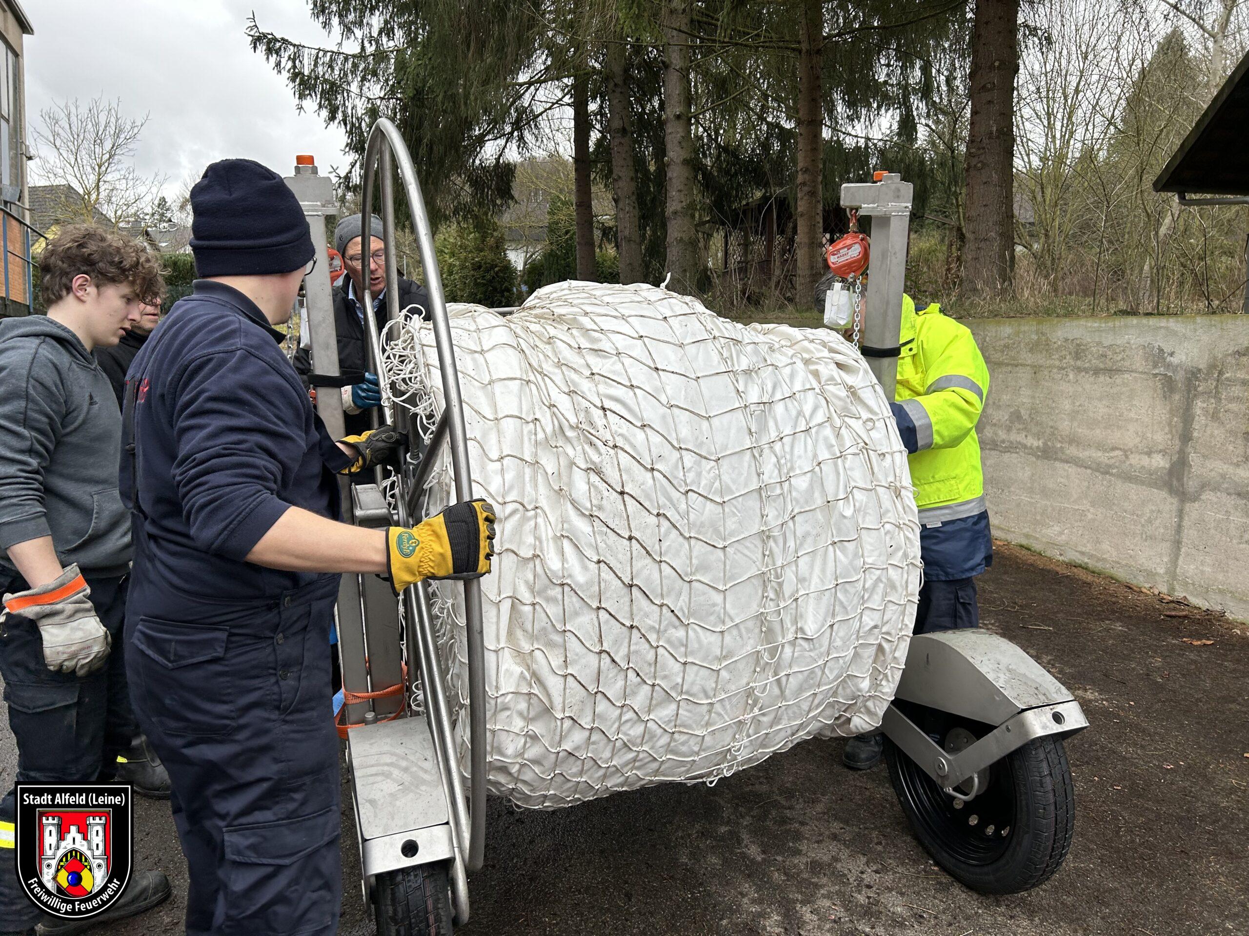 Abschließend wurden die Mobildeiche wieder aufgerollt und eingelagert.