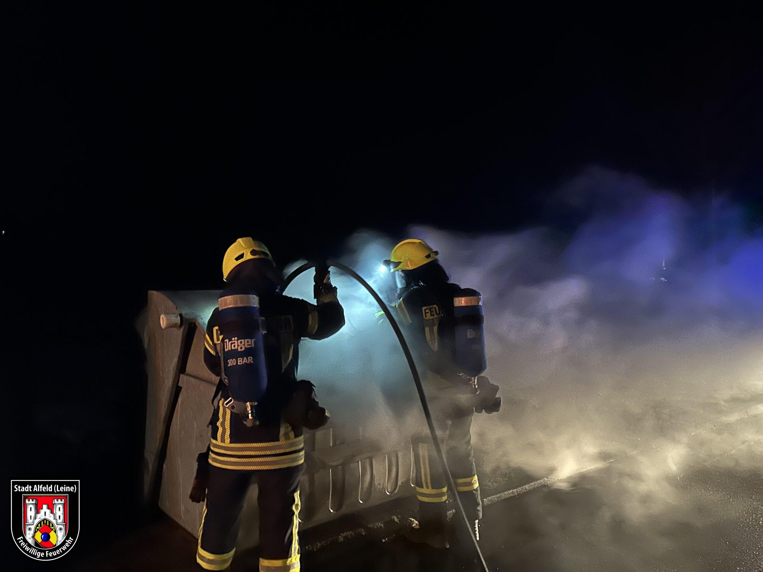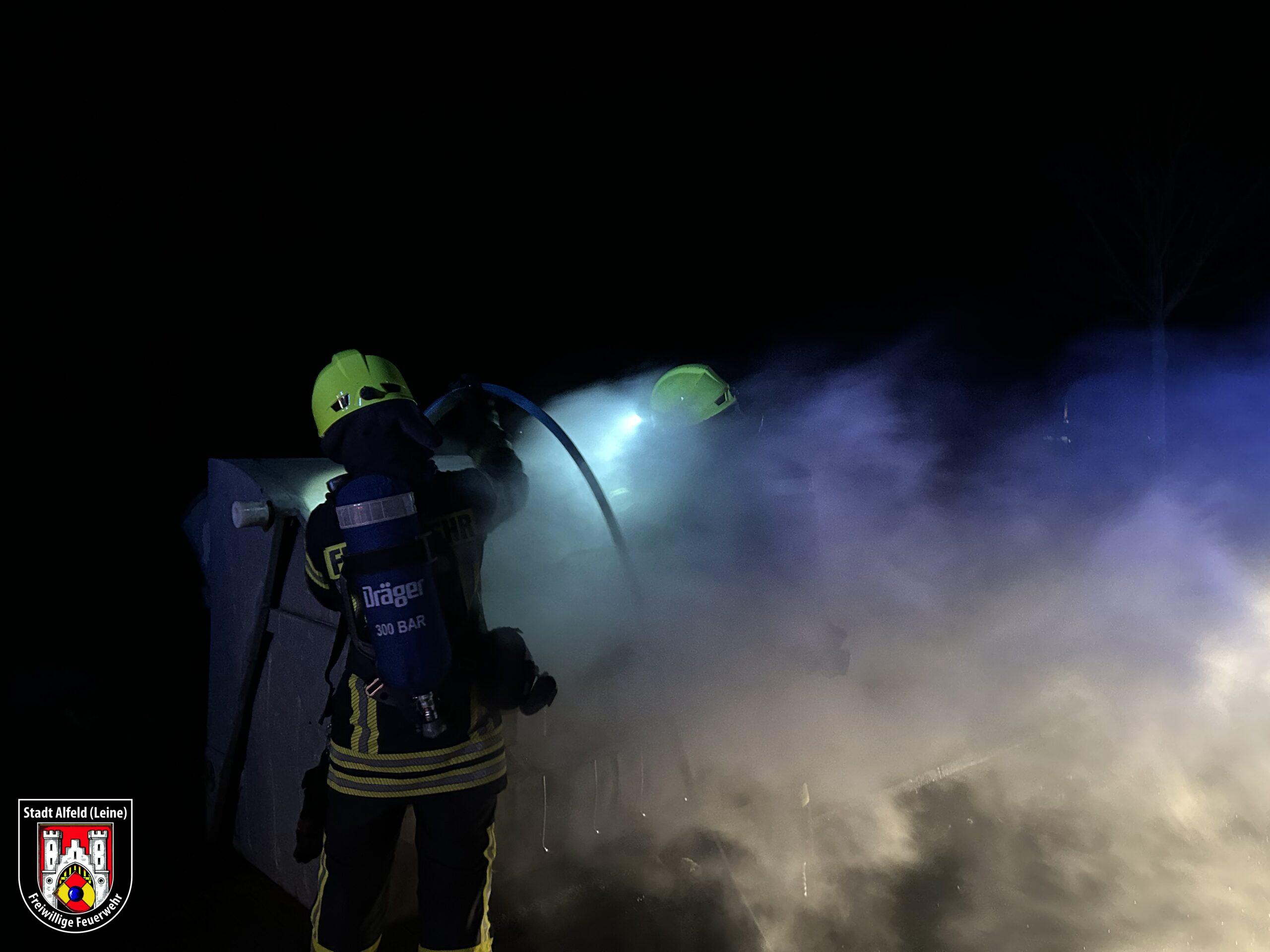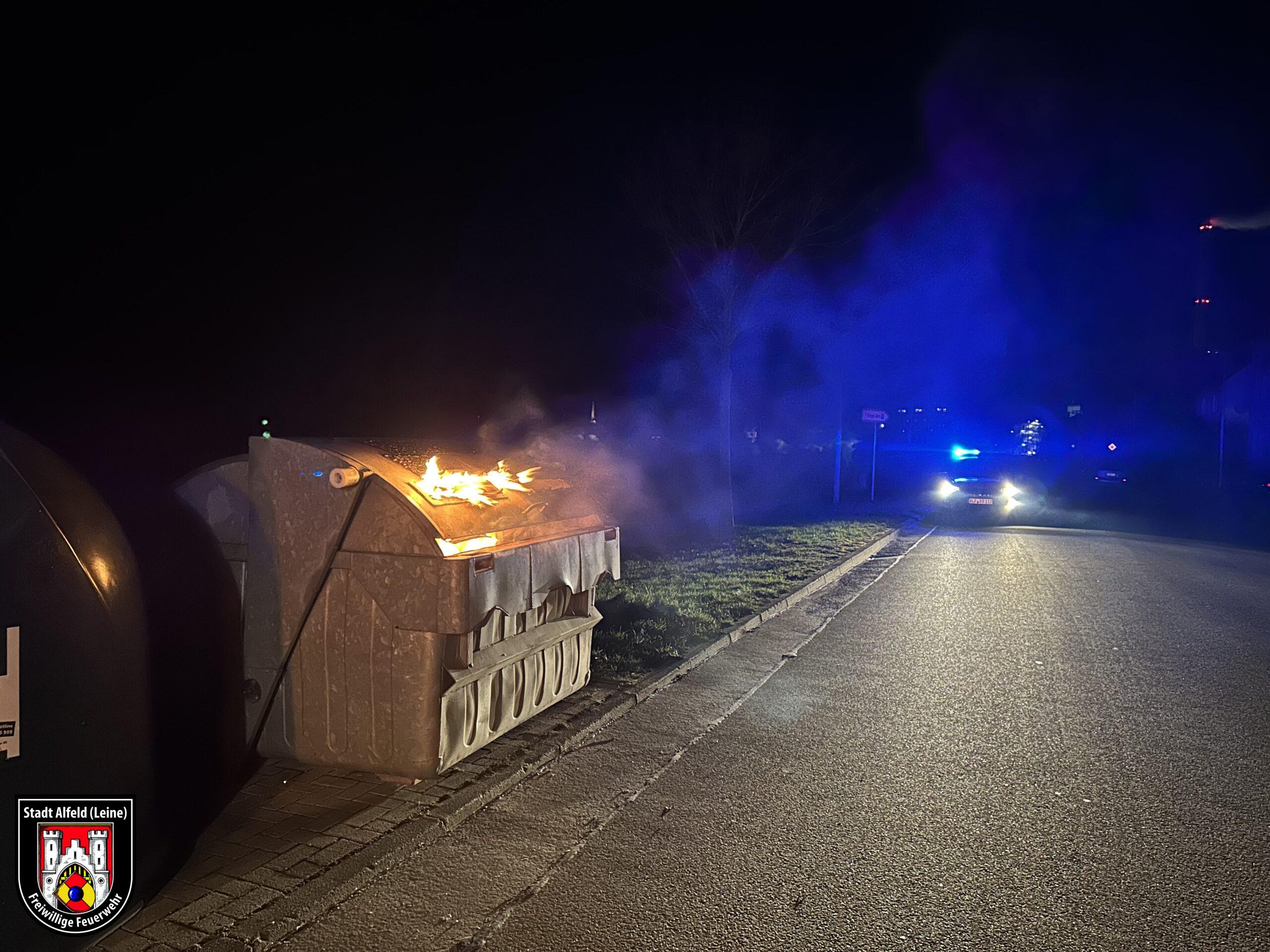 Bei Eintreffen stand der Papiercontainer in Vollbrand.
