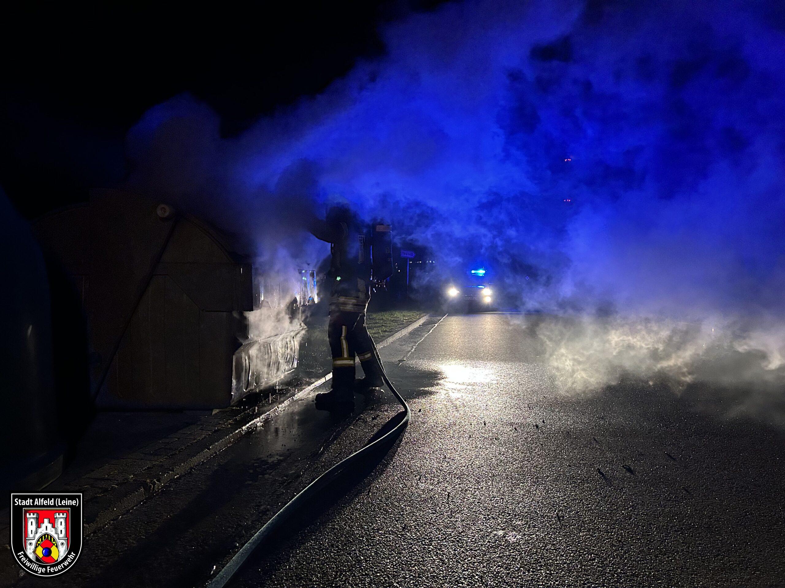 In der Nacht zum Dienstag wurden wir zu einem brennenden Papiercontainer in die „Ziegelmasch“ alarmiert.