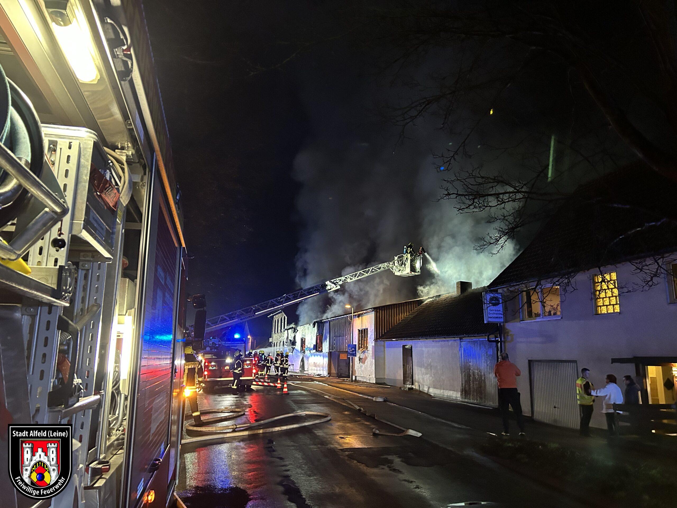 Die Wasserversorgung für die Drehleiter wurde aus einer offenen Wasserentnahmestelle mit dem LF Winzenburg und dem TLF16 aus Alfeld sichergestellt.