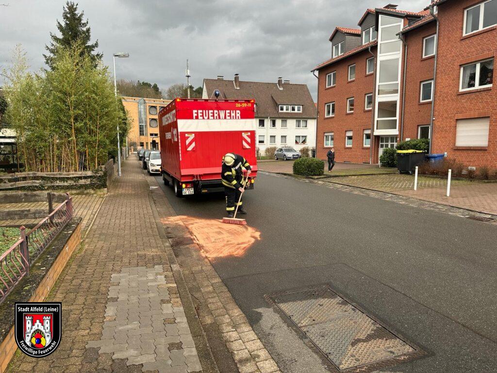 Ölverschmutzung im Brunnenweg auf circa 2 Quadratmetern.