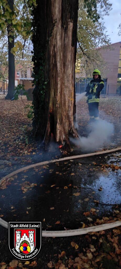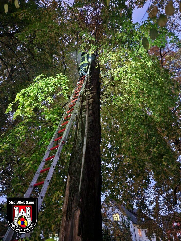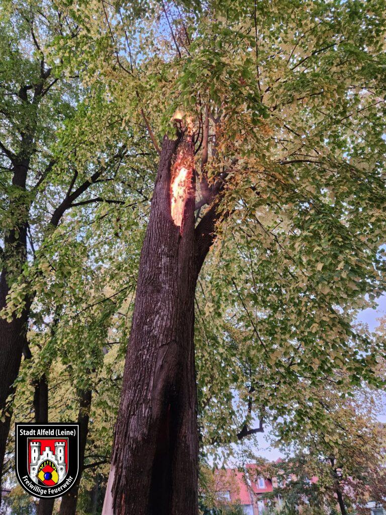 Auf dem alten Friedhof brannte auf 8m Höhe ein Baum im inneren seines Stammes.