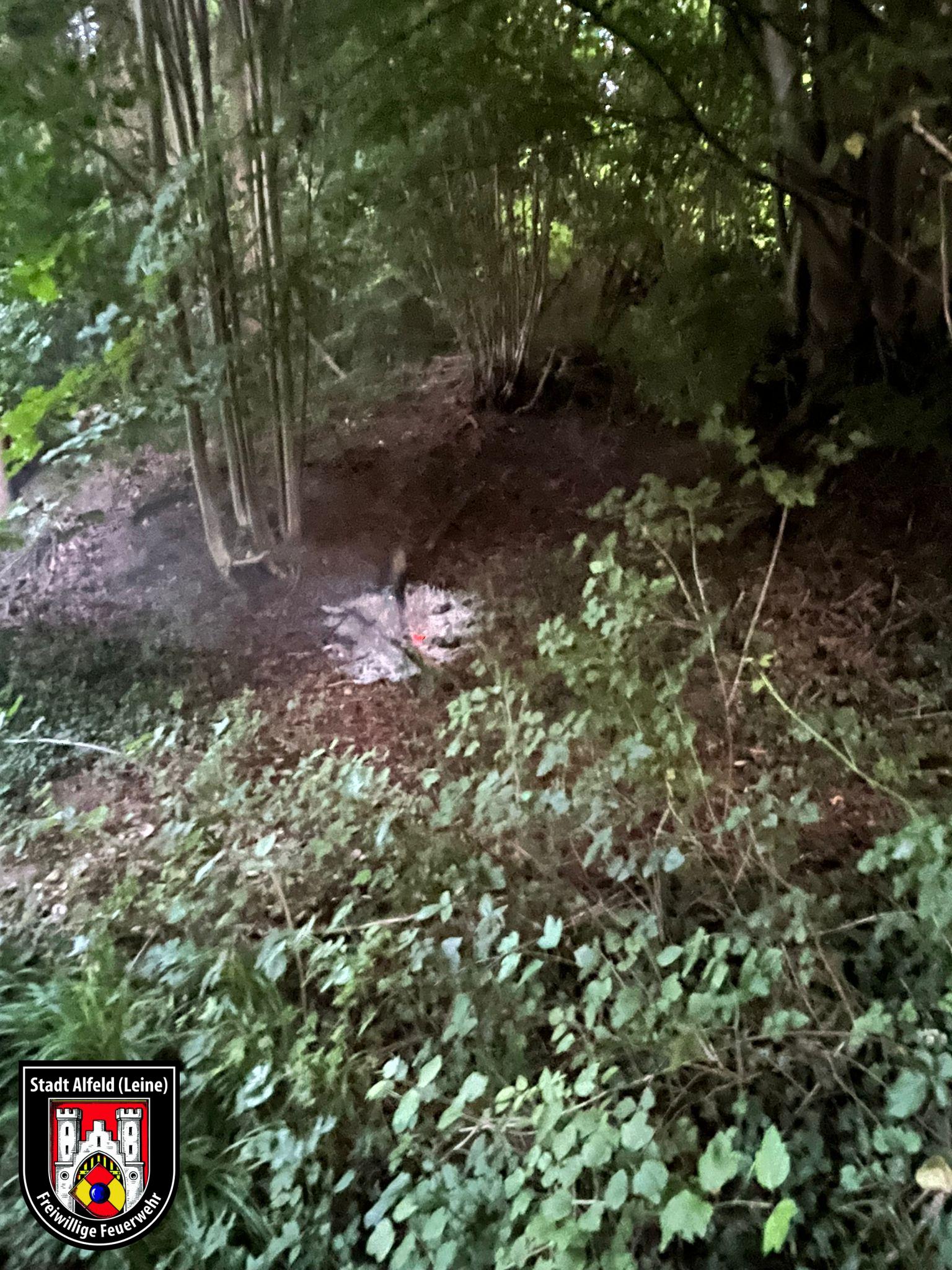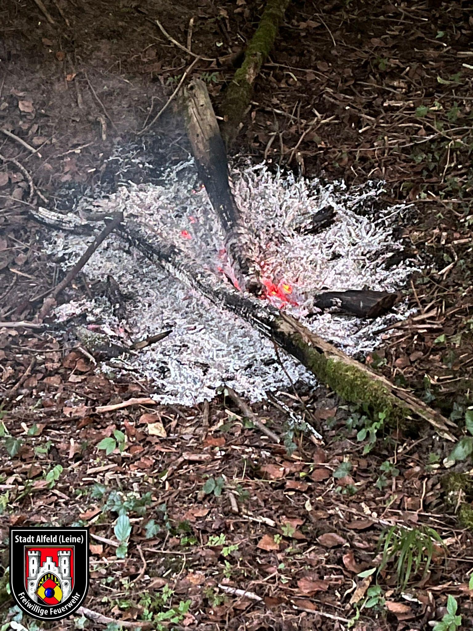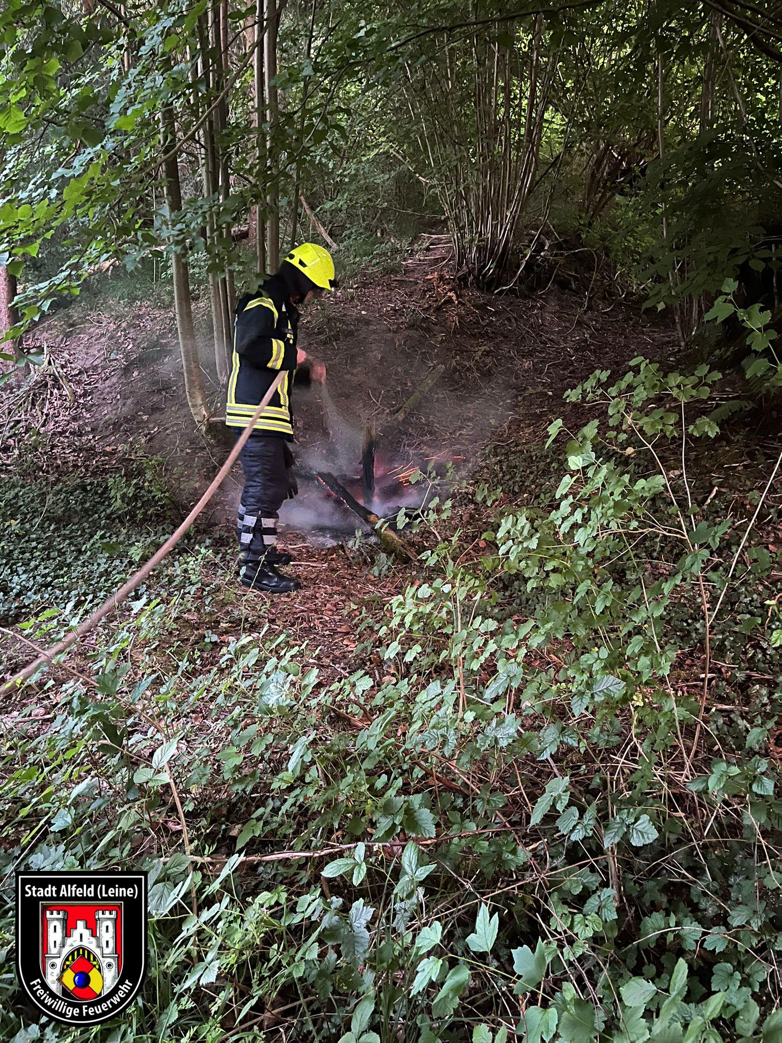 Die Löscharbeiten wurden mit Kleinlöschgerät (Hochdruchlöscher und Kübelspritze) durchgeführt und der Bereich abschließend mittels Wärmebildkamera kontrolliert.