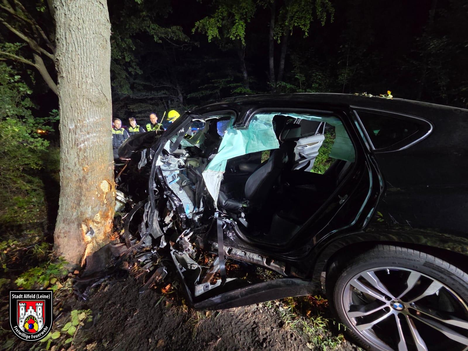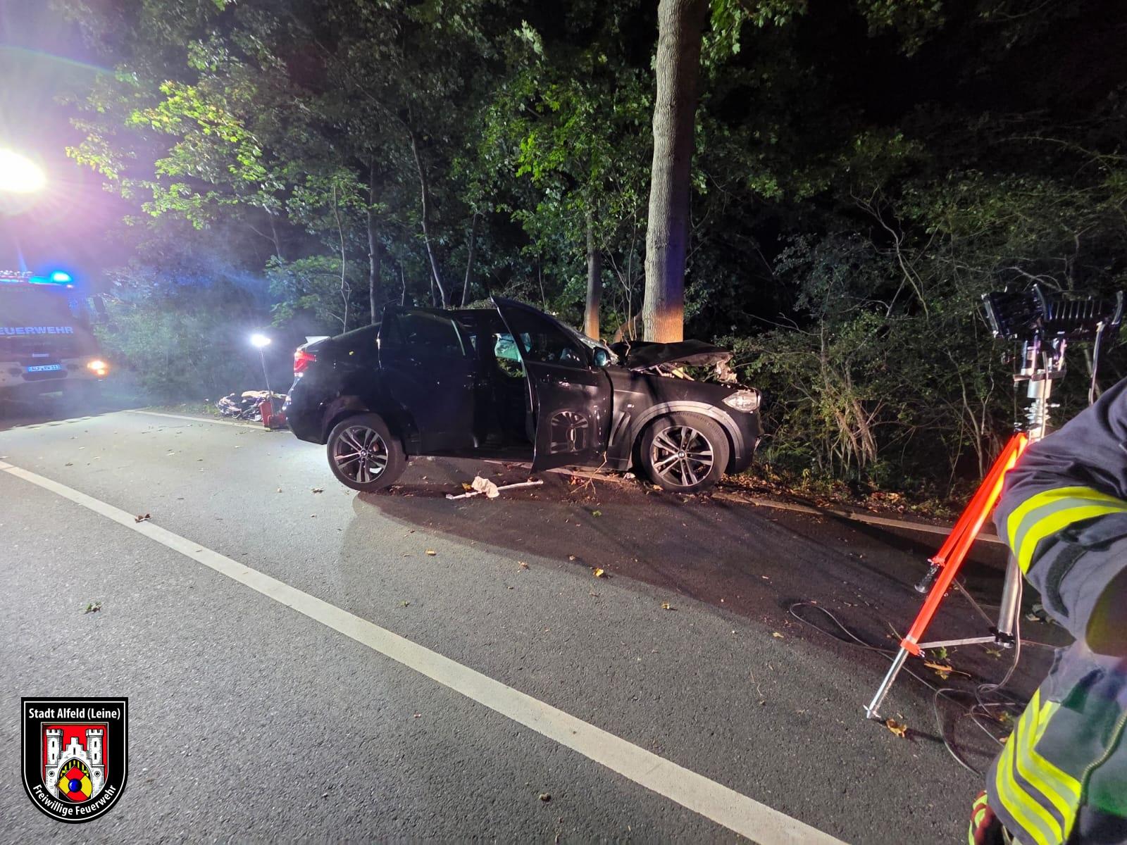 Im Bereich der L485 (Langenholzen – Sibbesse) war ein PKW linksseitig gegen einen Baum geprallt.