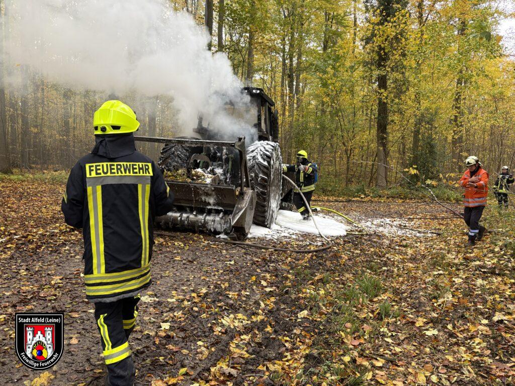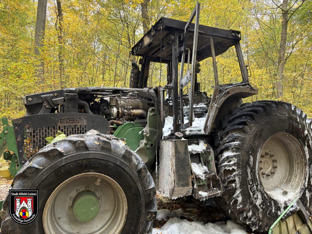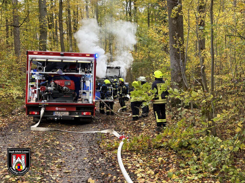 Bei Eintreffen im Waldgebiet zwischen Sack und Eberholzen stand ein Trecker in Vollbrand.
