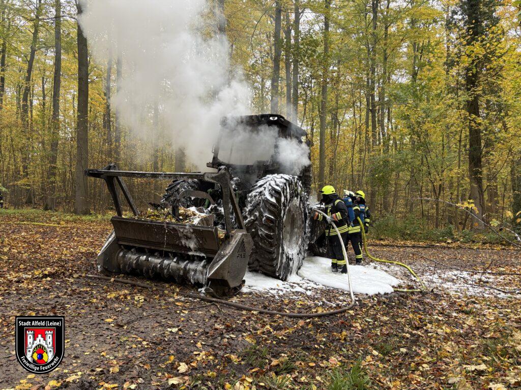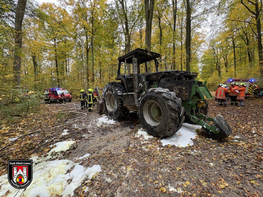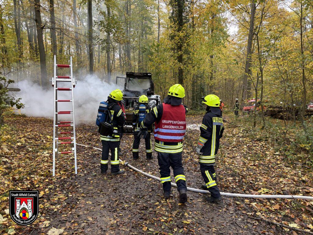 Bei Eintreffen im Waldgebiet zwischen Sack und Eberholzen stand ein Trecker in Vollbrand.